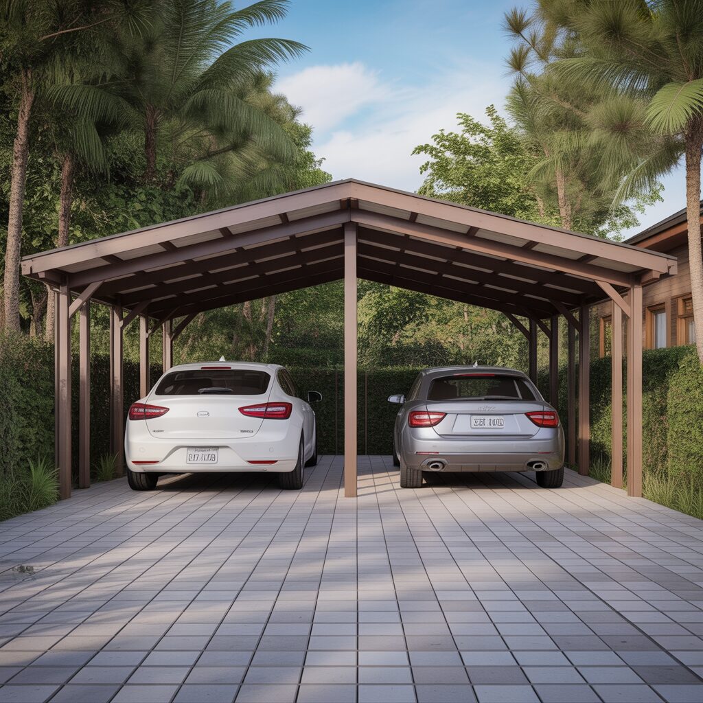 For households with multiple vehicles, a double carport provides spacious coverage. The wide design offers protection for two or more cars without feeling cramped. With careful planning, it can also include storage areas. This setup maximizes both function and convenience.