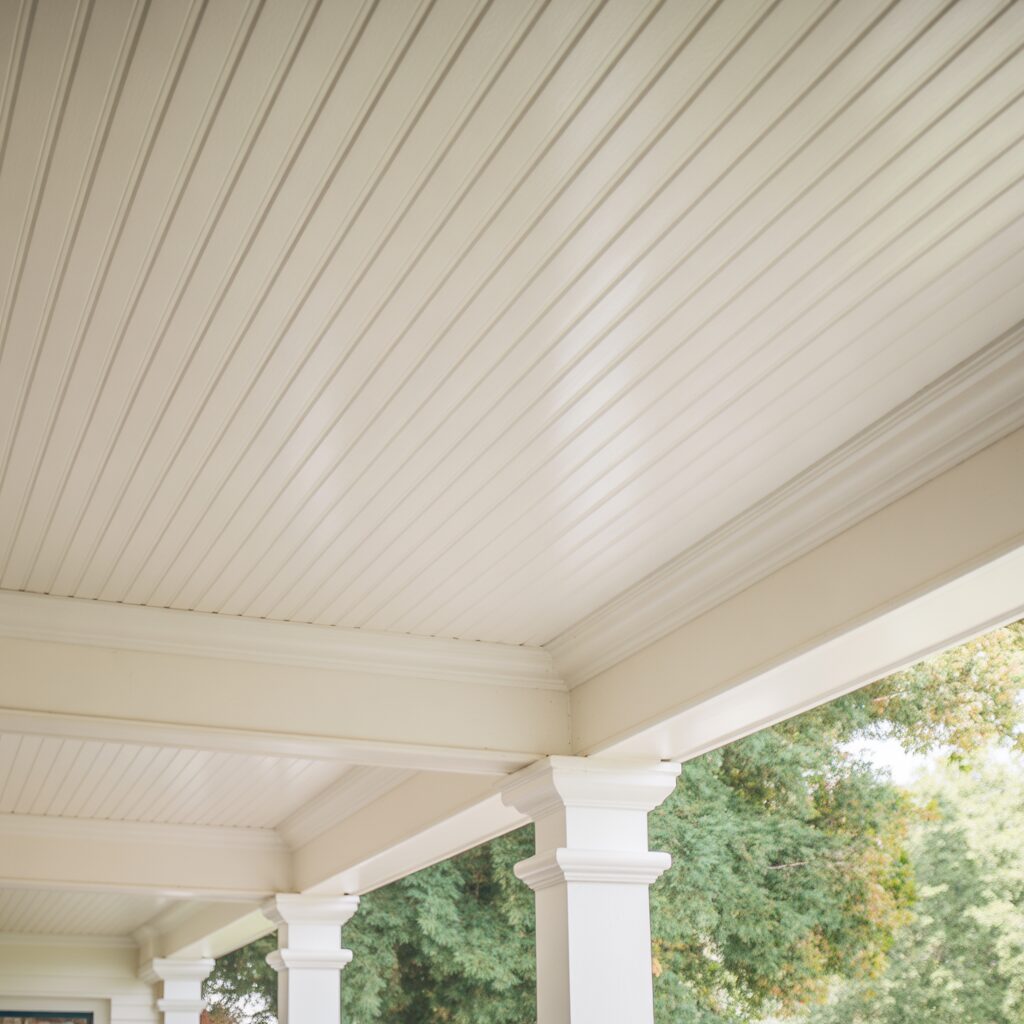 Beadboard offers a classic, cottage-inspired look for porch ceilings. The subtle grooves add visual interest without overwhelming the design. Painted in white, it creates a light and airy atmosphere. This is an affordable yet stylish option for traditional homes.