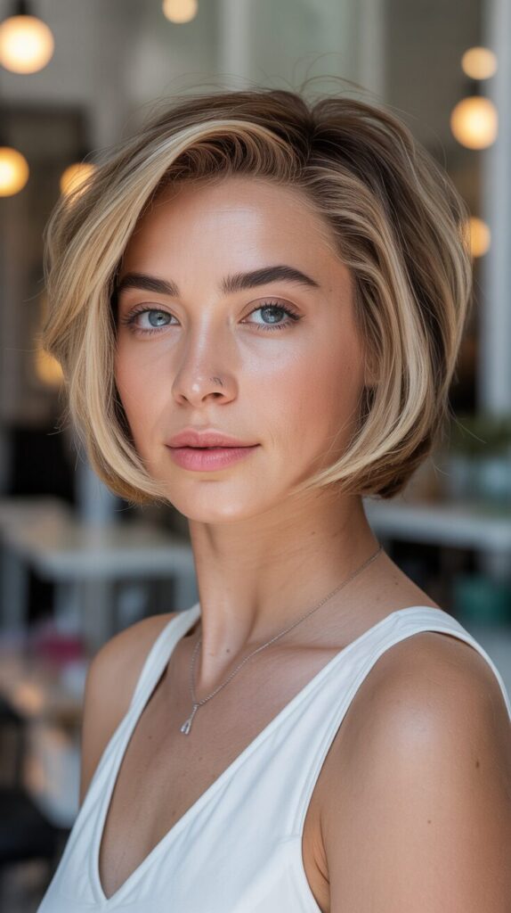 A classic bob with soft layers adds volume at the crown. The shorter length prevents hair from looking flat. Layers create movement and texture, making hair appear thicker. Itโs low-maintenance yet sophisticated, perfect for everyday wear.