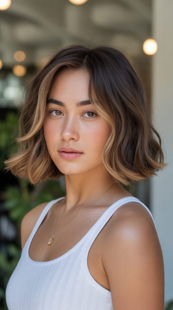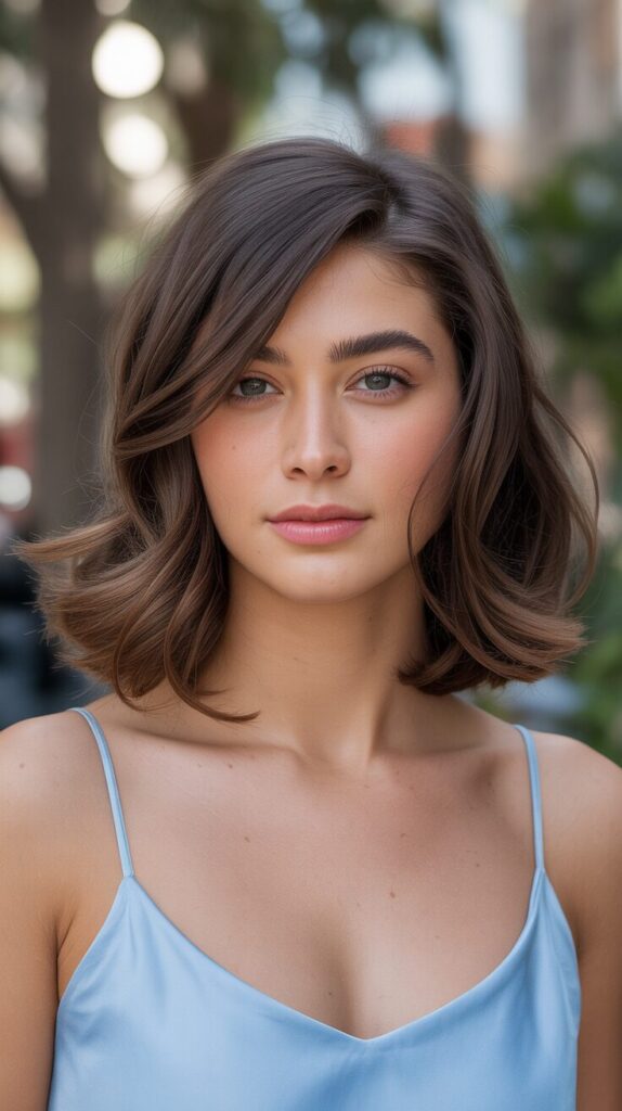 A shoulder-length lob with soft layers adds body without sacrificing length. Itโs versatile and suits various face shapes. The layers prevent hair from appearing flat, while movement creates natural bounce. Easy to style with waves or curls.