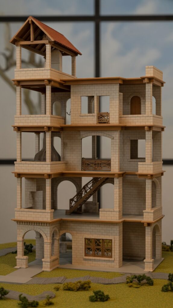 Large table with compartments for paints, brushes, and small parts. Include magnifying lamps for detail work. Display shelves for completed models. Use storage boxes to avoid clutter.