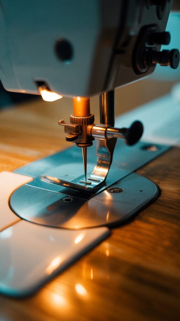 Sewing machines, cutting tables, and fabric storage. Pegboards keep tools accessible. Add a pinboard for inspiration. Bright light improves accuracy during sewing tasks.