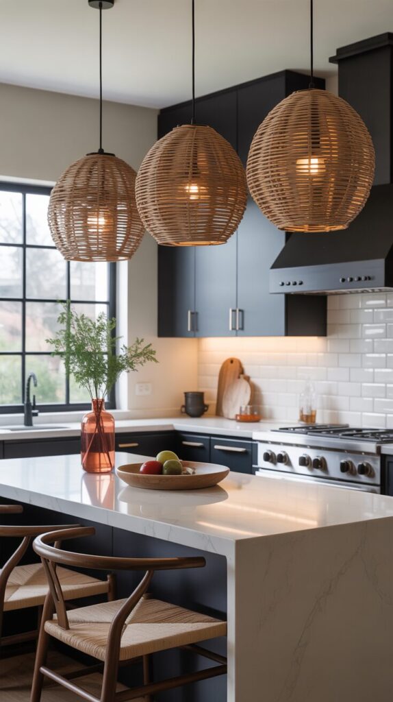 Choose statement pendant lights that serve as functional art pieces, providing task lighting while adding personality, style, and visual interest to your aesthetic kitchen from above dramatically and beautifully. Select fixtures in materials and shapes that complement your overall aesthetic—minimalist glass globes for modern spaces, woven rattan for organic style, or sculptural metal for industrial edge that anchors design direction. Hang pendants at varying heights over islands or dining areas rather than uniform installation, creating dynamic, collected appearance that feels less rigid and more personally curated over time naturally. Use oversized pendants for maximum impact, choosing fixtures that make bold statements rather than safe, forgettable options that disappear rather than contributing meaningfully to your kitchen’s aesthetic quality. The right pendants transform overhead lighting from purely functional element into design feature that completes your aesthetic vision while providing essential illumination for cooking and gathering activities.