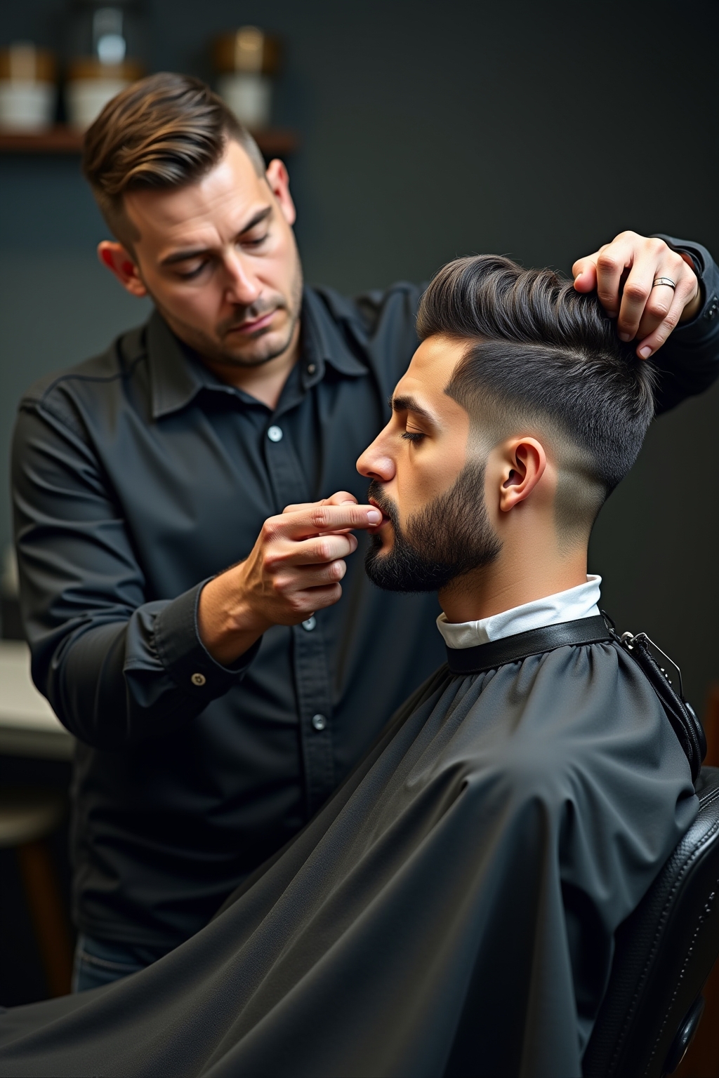 Der Blowout Taper Fade funktioniert grundsätzlich mit verschiedenen Haartypen, wobei mittleres bis dickes Haar mit leichter Textur die idealsten Ergebnisse liefert. Glattes bis leicht welliges Haar lässt sich besonders gut in die charakteristische aufgerichtete Form föhnen und behält die Struktur länger. Bei sehr feinem Haar kann das voluminöse Erscheinungsbild schwieriger zu erreichen sein – hier helfen spezielle Volumenpuder und Föhntechniken. Lockiges oder krauses Haar bietet natürliches Volumen, erfordert jedoch oft mehr Pflege und angepasste Schnittechniken, um den gewünschten Look zu erzielen. Besonders vorteilhaft ist dieser Haarschnitt-Stil für Männer mit mitteldichtem Haarwuchs. Der Barbier sollte den Schnitt immer an die natürliche Haarstruktur anpassen und entsprechende Styling-Tipps geben.