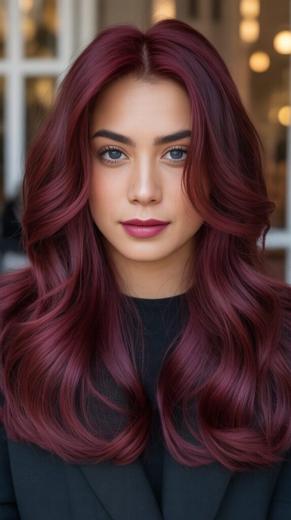 Embrace rich, luxurious shades of burgundy, wine red, deep plum, and mahogany that complement winter’s darker color palette while adding warmth and dimension to your look. These jewel-toned colors look stunning against winter clothing in blacks, grays, and neutrals, creating beautiful contrast that makes your hair the star of your overall appearance. Ask your colorist for multi-dimensional burgundy with darker roots that gradually lighten toward the ends, creating depth and preventing the color from looking flat or one-dimensional. Maintain the vibrancy with color-safe shampoos, weekly deep conditioning treatments, and color-depositing masks that refresh the tone between salon visits without causing damage. This sophisticated color choice works beautifully on all hair lengths and textures, offering dramatic impact that feels elegant rather than attention-seeking or overly trendy.