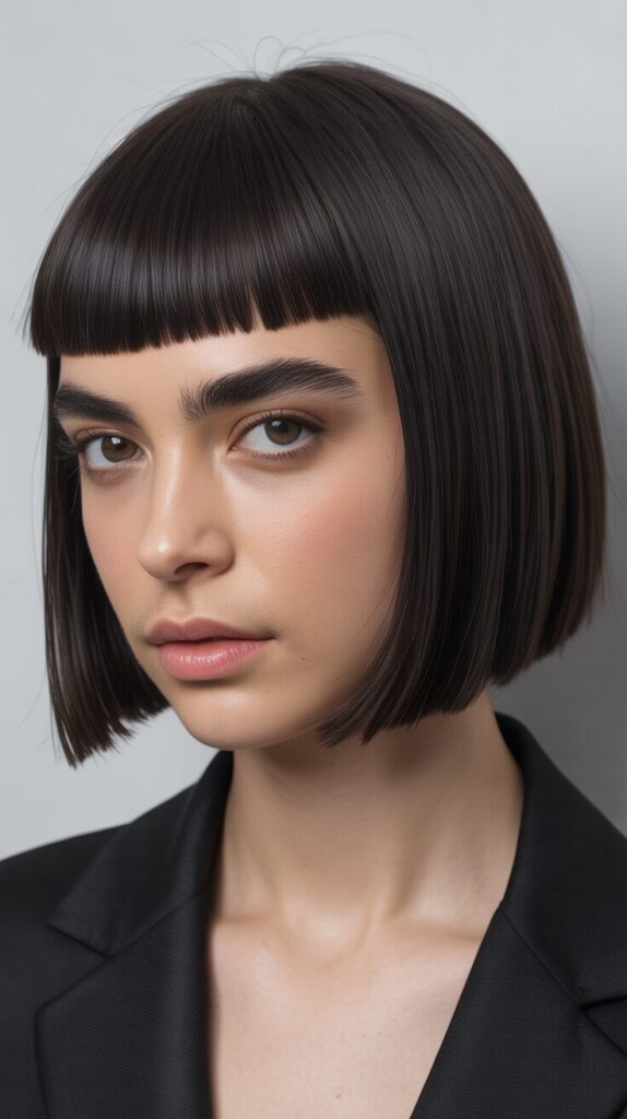 2. Sleek Blunt Bob with Micro Fringe