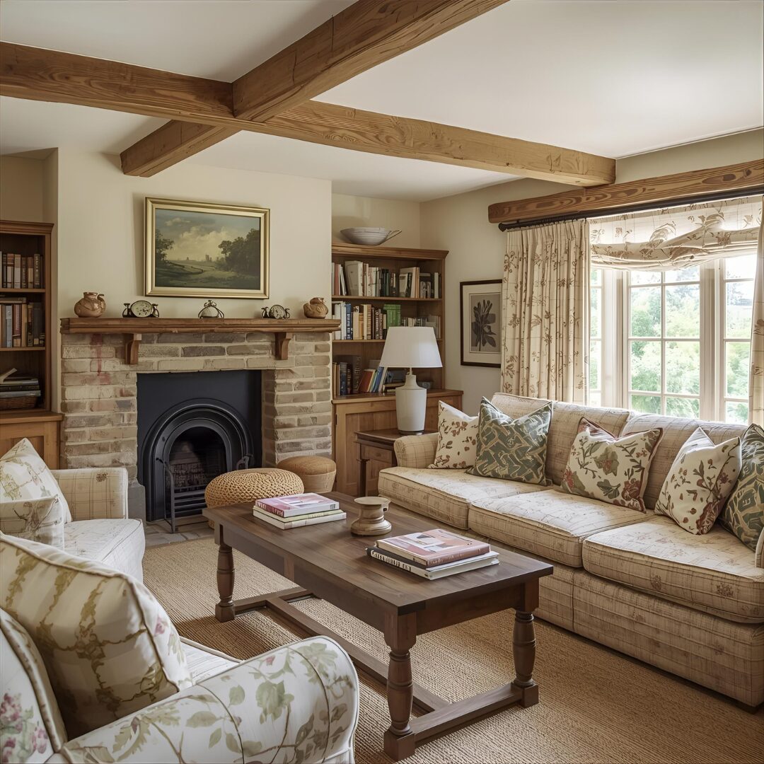 One of the hallmarks of a British cottage is the exposed timber ceiling beams. They add depth, warmth, and a sense of history to any room. Even faux beams can bring a rustic touch without major construction. Pairing them with whitewashed walls enhances the contrast beautifully.