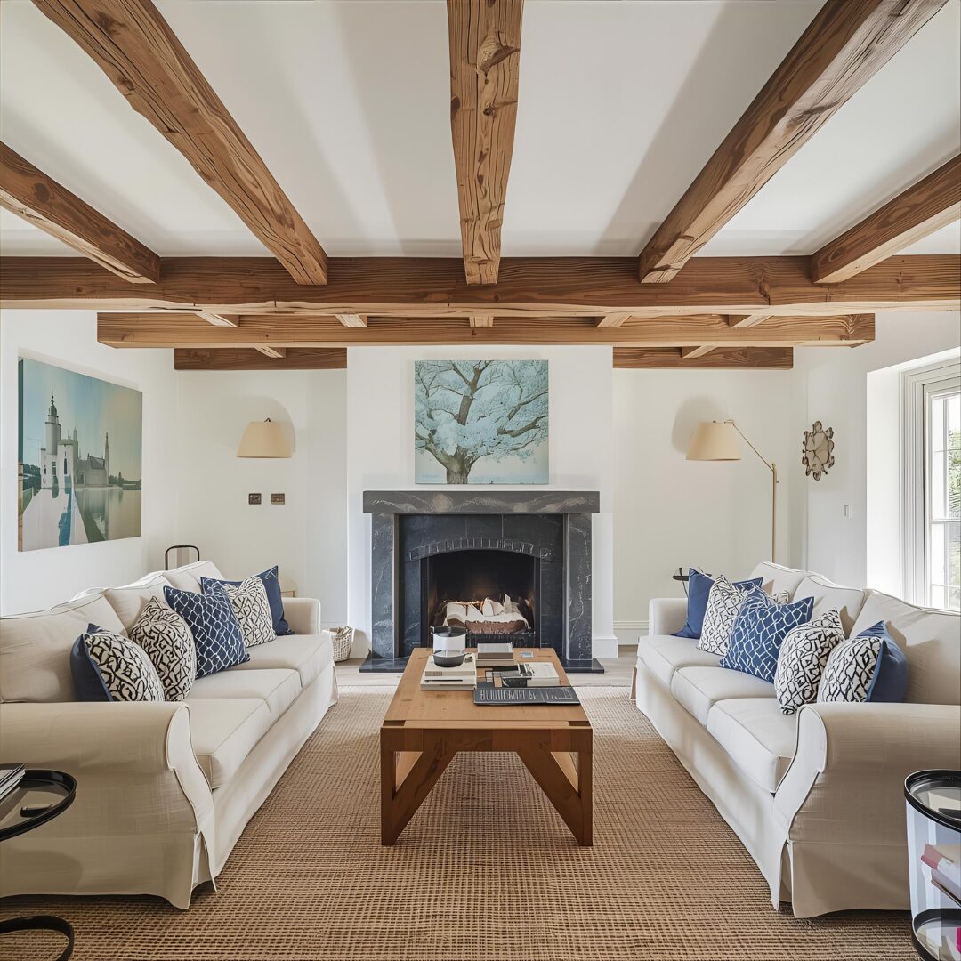 Pro Tip: Keep beams natural or slightly stained to highlight the grain for a more authentic look.
