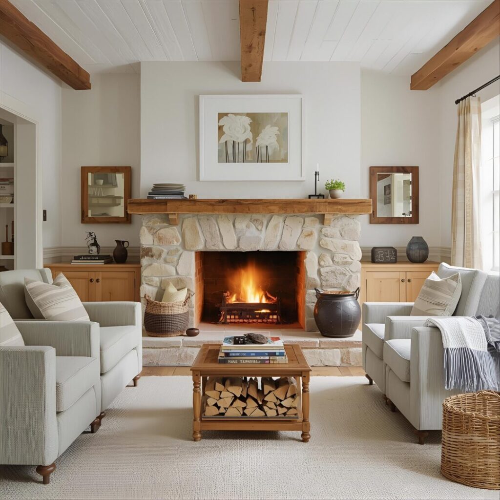 Pro Tip: Add a reclaimed wooden mantel above the fireplace for extra cottage-style charm.
