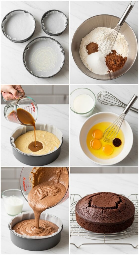 Grease and line two 9-inch round pans with parchment paper. This ensures easy removal and prevents sticking.