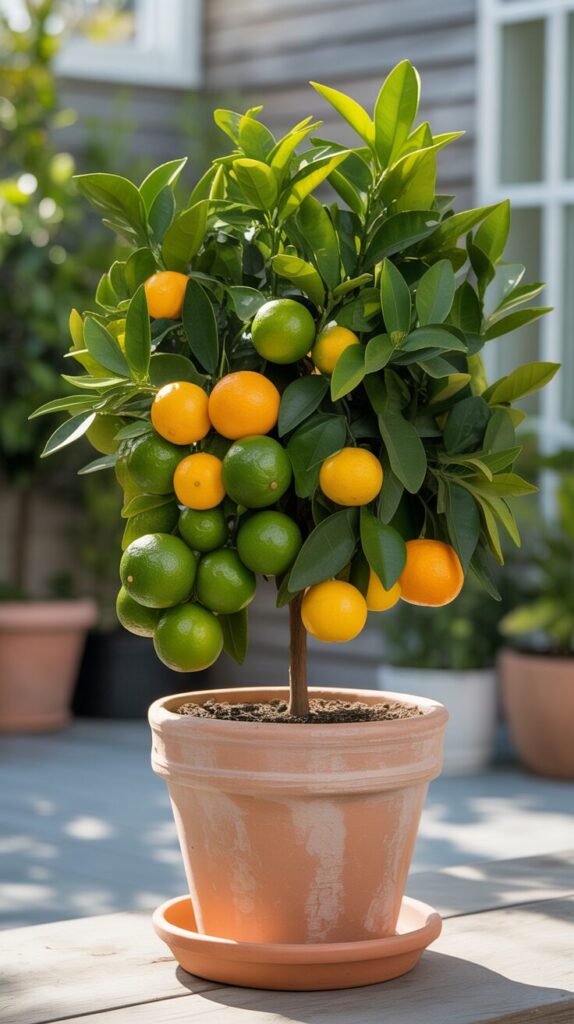 Dwarf citrus trees such as Meyer lemons, calamondin oranges, and key limes are ideal for container gardening. They remain compact, making them easier to manage while still producing an abundance of fruit. Their smaller root systems thrive in pots, so they adapt perfectly to patios, balconies, and even indoor setups.