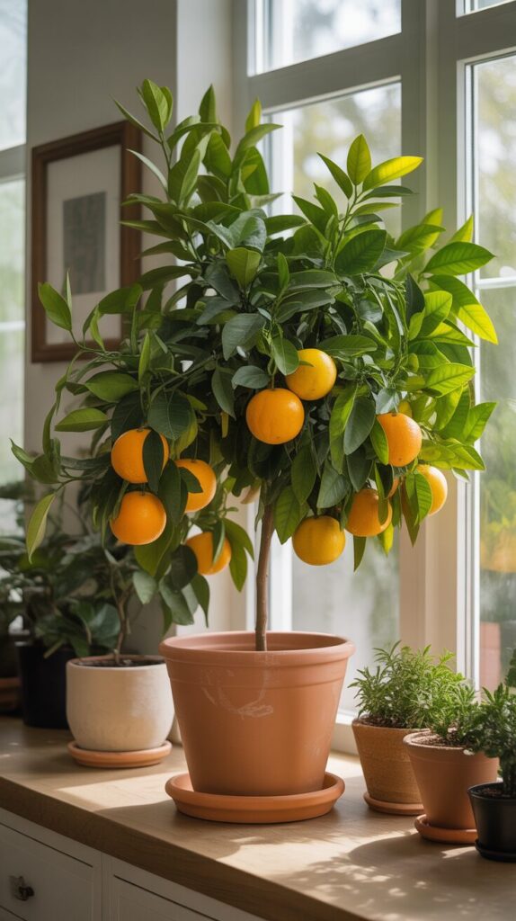 Citrus trees thrive indoors if they receive at least 6–8 hours of direct sunlight daily. Placing pots near south-facing windows brings life to interiors while allowing you to enjoy their glossy green leaves year-round. Indoor citrus not only purifies the air but also fills the home with seasonal fragrance when in bloom.