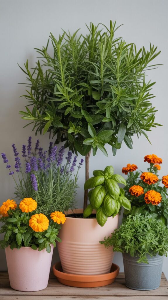 Citrus trees pair beautifully with herbs, flowers, and ornamental plants in shared containers. Companion planting not only enhances the visual appeal but also promotes healthy soil by balancing moisture levels. Lavender, basil, and marigolds thrive alongside citrus while adding extra fragrance and color to the display.