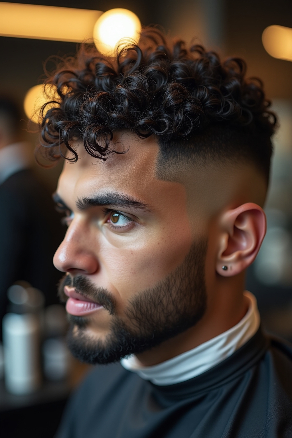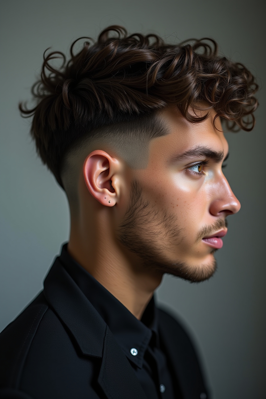 Maintenance Tip: Most styles require trimming every 2-3 weeks to maintain the crisp fade effect while allowing the curls on top to flourish.
