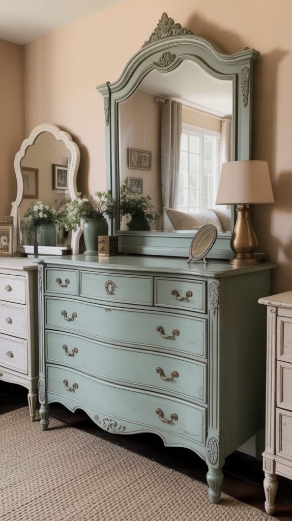 Incorporate vintage or antique furniture pieces including dressers, nightstands, armoires, or mirrors that add character, history, and that collected-over-time quality that makes dreamy bedrooms feel personal and special. Shop flea markets, antique stores, estate sales, or online marketplaces for unique pieces with beautiful details like carved wood, curved lines, or original hardware that modern furniture rarely replicates authentically. Paint or refinish vintage pieces in soft colors that coordinate with your palette if the original finish doesn’t suit your aesthetic, creating custom furniture at fraction of new retail costs. Mix vintage finds with new pieces freely, creating eclectic charm that feels curated and intentional rather than matchy-matchy showroom displays that lack personality and individual character entirely. These unique furniture pieces become conversation starters and beloved elements of your dreamy bedroom, adding depth and story that mass-produced furniture simply cannot replicate or provide authentically over time.