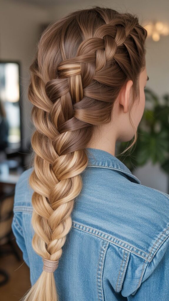 The Dutch fishtail braid combo merges two popular braiding techniques into one stunning, intricate style that showcases advanced braiding skills and creates incredible texture. This sophisticated variation typically starts with a Dutch braid at the crown for volume and structure, then transitions into a fishtail braid partway down for added detail and visual interest. The combination of techniques creates a dynamic, multi-dimensional look that’s far more interesting than either braid alone, with the raised Dutch section contrasting beautifully against the intricate, woven pattern of the fishtail. This show-stopping style is perfect for special occasions, photo shoots, or anytime you want to showcase your braiding prowess and create a hairstyle that’s truly unique. Best suited for medium to long hair with some texture (the fishtail section holds better on slightly textured hair), this combination braid works beautifully on all face shapes and can be dressed up with accessories or left simple to let the intricate braiding speak for itself.
