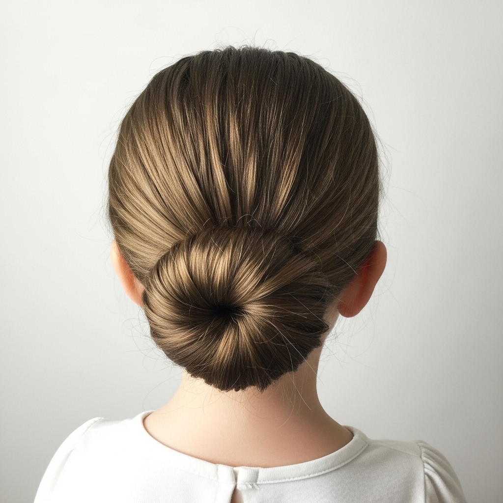 A low twisted bun is neat and comfortable for toddlers. Gather hair at the nape, twist gently, and secure it into a small bun. It’s a versatile style suitable for formal events or daily wear. Easy to create, soft on the scalp, and keeps hair tidy all day. Elegant and fuss-free.