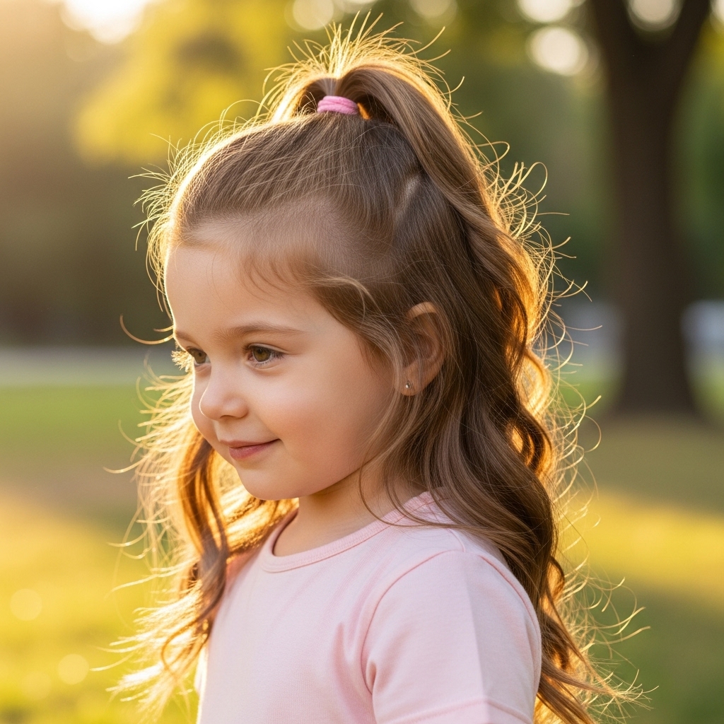 A side braid is simple, elegant, and functional. Part the hair to one side and braid gently down the shoulder. It stays secure during play and looks adorable in pictures. Suitable for medium to long hair, it can be finished with a soft bow or elastic. Perfect for school or family outings.