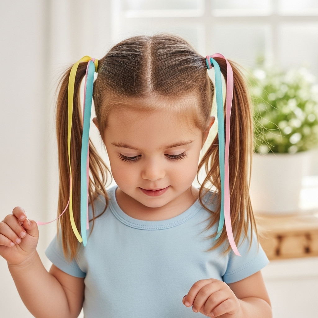 Double pigtails are timeless and playful for toddlers. Part the hair down the middle and tie each section with soft elastics. It keeps hair balanced and free from tangles. Ideal for active toddlers and gentle on the scalp. Add colorful ribbons to enhance the fun, energetic look.