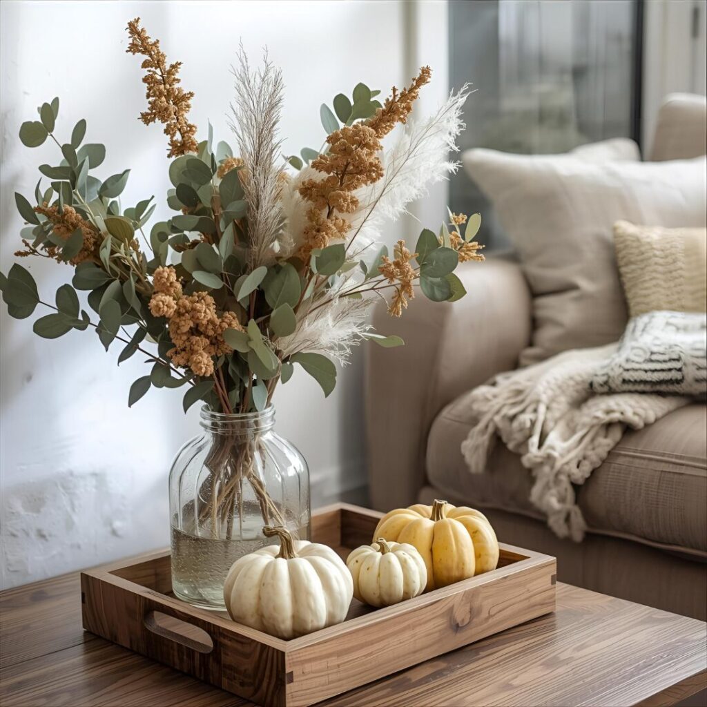 Incorporating seasonal greenery like dried leaves, eucalyptus, or small pumpkins adds organic charm. These natural accents bring the outdoors inside, even in small apartments. Pair them with wooden trays or woven baskets for texture. It’s a quick way to capture autumn’s beauty.