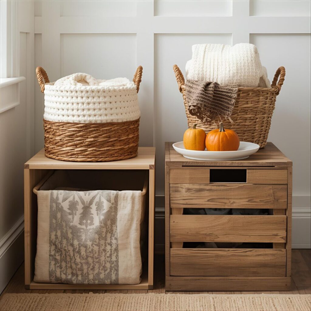 Storage doubles as decor in apartments when done thoughtfully. Choose woven baskets, wooden crates, or fabric bins in fall colors. They provide extra space for blankets while adding seasonal texture. Functional decor ensures your apartment remains organized yet stylish.