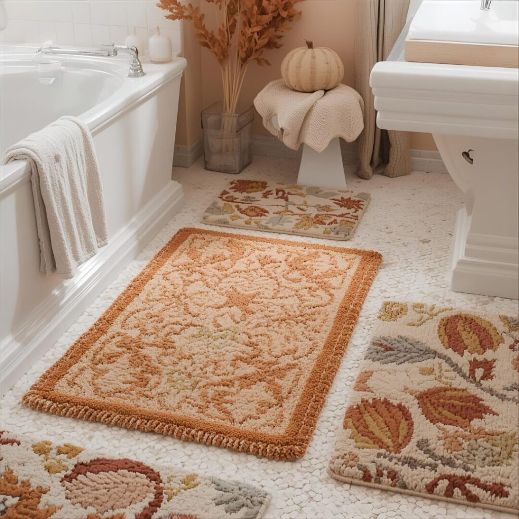 A cozy bath mat instantly adds comfort while reflecting fall charm. Look for mats in autumn shades or patterned designs that suit the season. A larger rug can make the bathroom feel more inviting. Rugs also help define space and add layers of texture.