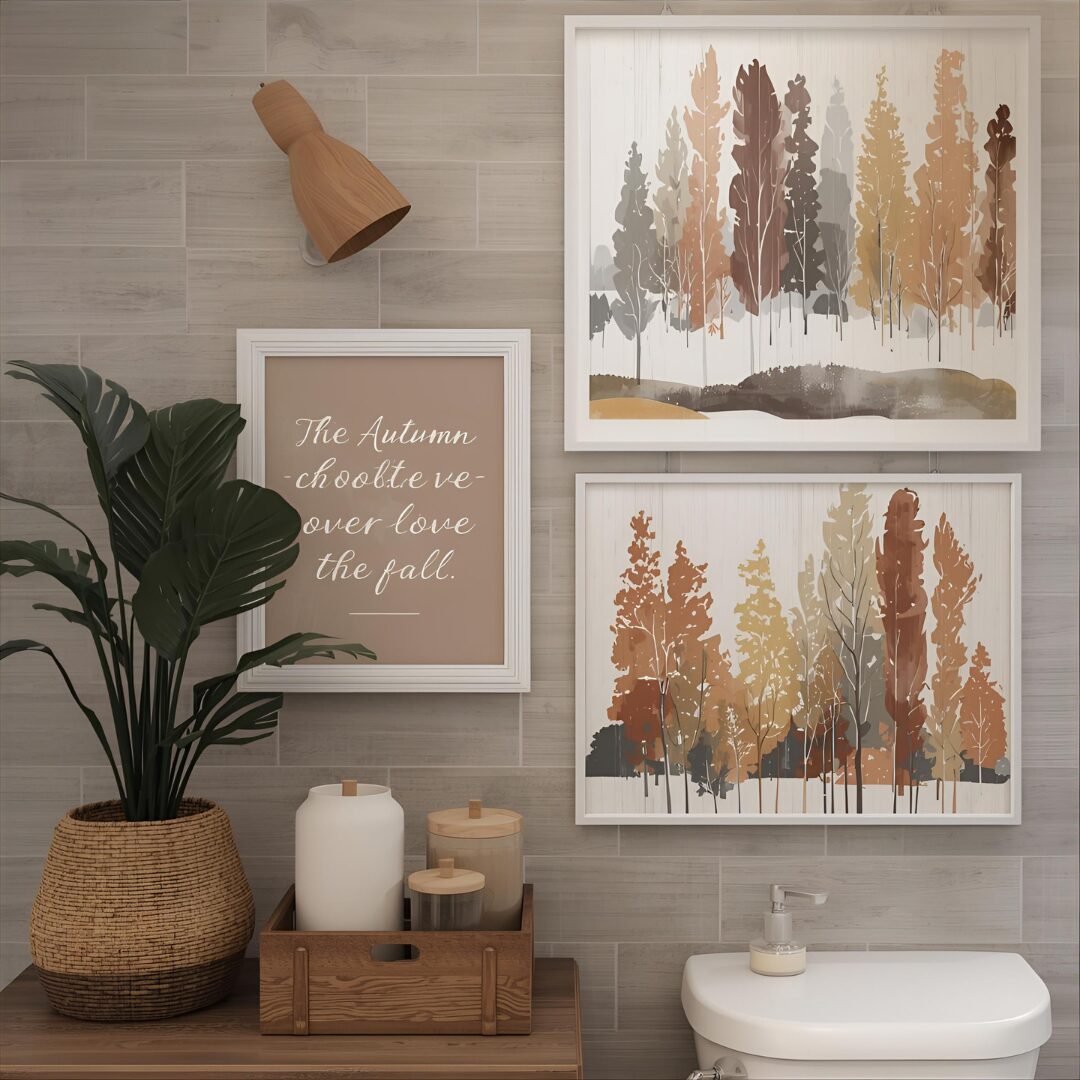 Wall art is an easy way to refresh your bathroom for the season. Prints of fall landscapes, rustic quotes, or abstract pieces in warm colors add character. Art also personalizes the space, making it feel more curated. Removable hooks make seasonal swaps simple for renters.