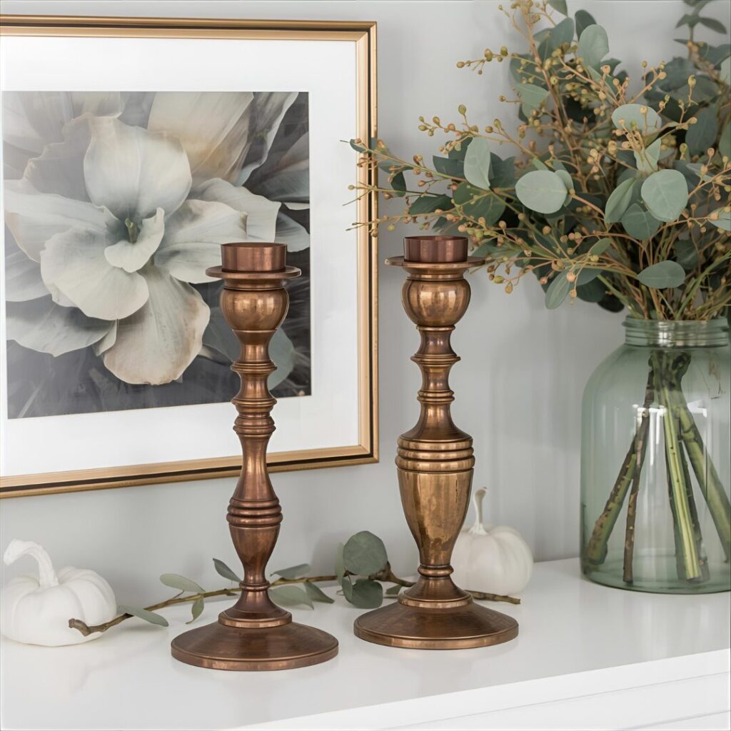 Touches of bronze, copper, or gold elevate fall decor with subtle shine. Metallics pair well with earthy tones, making spaces feel rich and layered. Small details like candleholders, trays, or picture frames are perfect additions. They bring elegance without overpowering rustic charm.