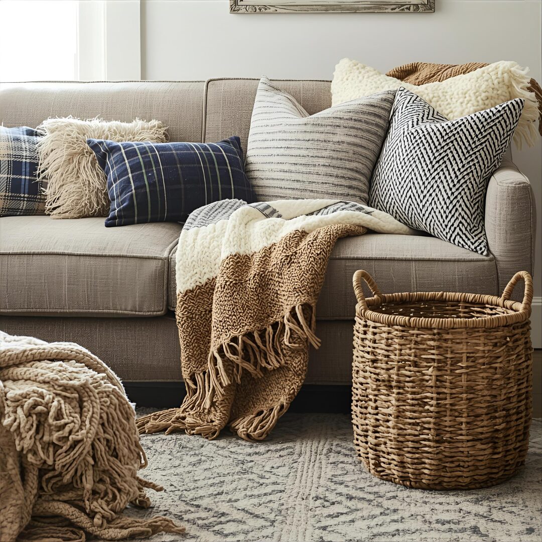 Pro Tip: Keep a basket of extra blankets nearby for guests and added charm.