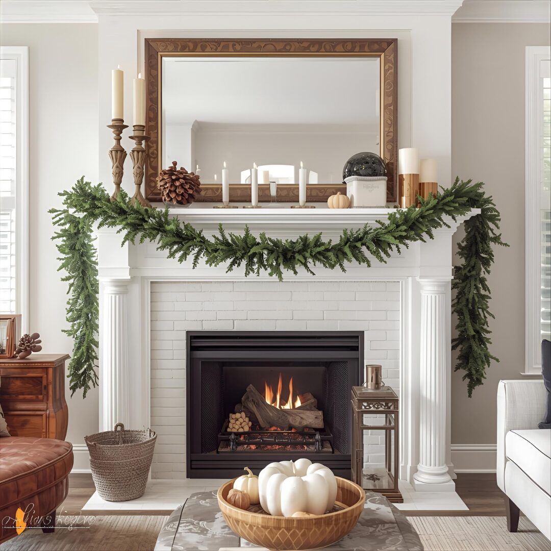 If your living room has a fireplace, make it the centerpiece of your fall decor. Styling the mantle with garlands, candles, and seasonal accents enhances the cozy feel. Even an electric or faux fireplace can create ambiance. It draws people together and anchors the entire space.
