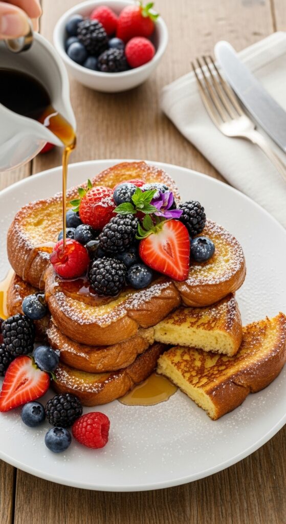 French toast is proof that simple ingredients can create extraordinary results. Whether you keep it classic or explore creative twists, the key lies in balance — the right bread, a creamy custard, and perfect golden browning.