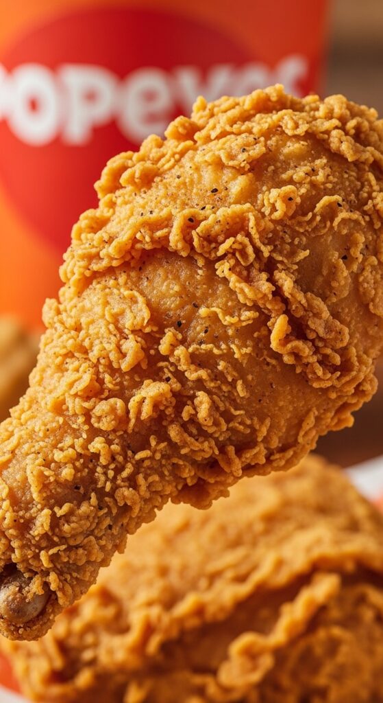 Popeyes chicken is known for bold, Louisiana-style spices. Add cayenne, smoked paprika, white pepper, garlic powder, onion powder, and a touch of sugar to your flour coating. Marinate in buttermilk for 6–8 hours for best flavor.