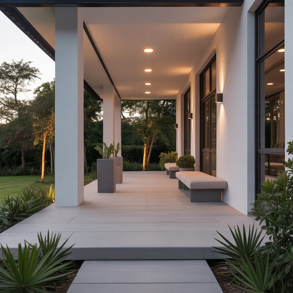 For a polished and uncluttered appearance, modern porches focus on clean lines and neutral colors. Sleek benches, geometric planters, and recessed lighting work beautifully in this design. Less décor allows the architecture and simplicity to shine. The result is a stylish porch that looks contemporary yet inviting.