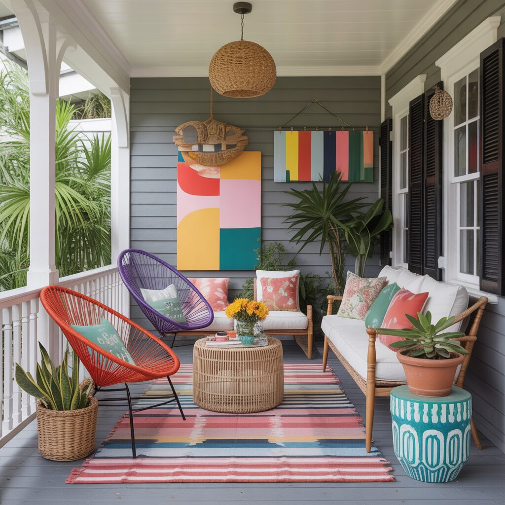 An eclectic porch embraces creativity and personal style. Mixing different furniture styles, bold colors, and unique art pieces makes the space fun and unexpected. This design works well when layered with patterns and textures that reflect your taste. It feels vibrant and full of personality.