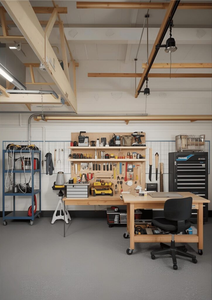 Create the ultimate functional workshop by installing solid workbenches, a pegboard wall for tools, and heavy-duty shelving for supplies and hardware. Ensure you have bright, shadow-free task lighting over all your work areas to see fine details and ensure safety during precise work. Organize your lumber, pipes, and other long materials on overhead storage racks to keep them tidy and free up valuable floor space. Integrate a robust dust collection system and a shop vacuum to maintain clean air and make post-project cleanup quick and easy. This well-organized garage workshop becomes a haven for building, repairing, and bringing all your creative project ideas to life.