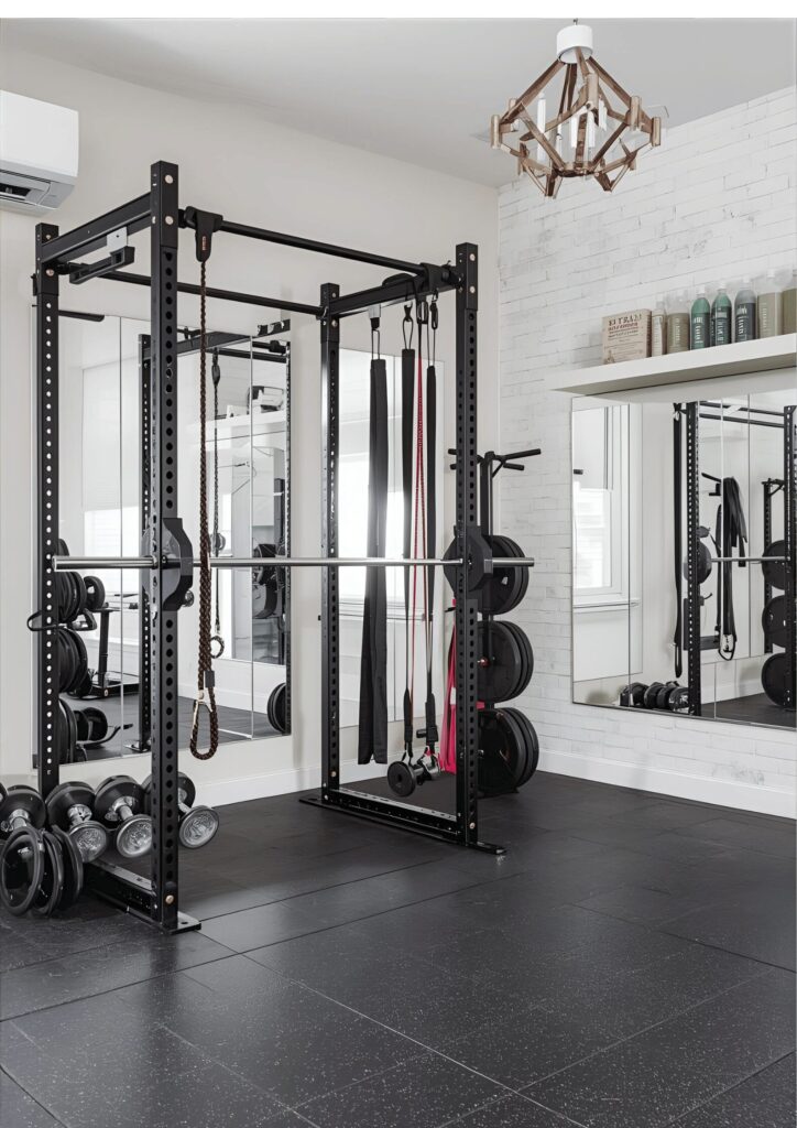 Ditch the expensive membership and build a personalized fitness sanctuary tailored to your workout routine. Install durable rubber gym flooring to protect your concrete slab and reduce noise from dropped weights. Maximize your space with versatile equipment like adjustable dumbbells, a squat rack, and resistance bands for a full-body workout. Ensure proper ventilation with a fan or portable AC unit and add large mirrors to check your form. Complete the space with a Bluetooth speaker for motivation and a small shelf for towels and water bottles to keep everything organized.