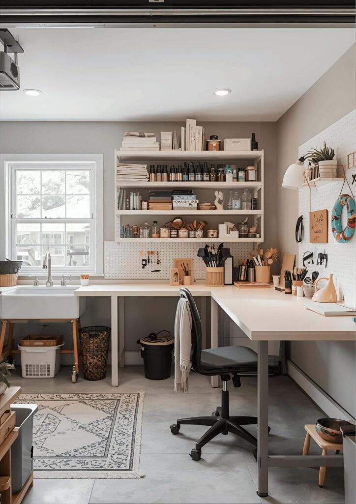 Unleash your creativity by converting your garage into a bright and organized art studio with excellent natural or artificial lighting. Install sturdy, easy-to-clean work tables and a multitude of shelving units and pegboards to store all your supplies within reach. Prioritize proper ventilation, especially if you work with paints, resins, or sprays, to ensure a safe and comfortable environment. Incorporate a deep utility sink for easy clean-up and a cozy sitting area for brainstorming and taking breaks. This dedicated space will allow your DIY projects and artistic passions to flourish without clutter taking over your home.