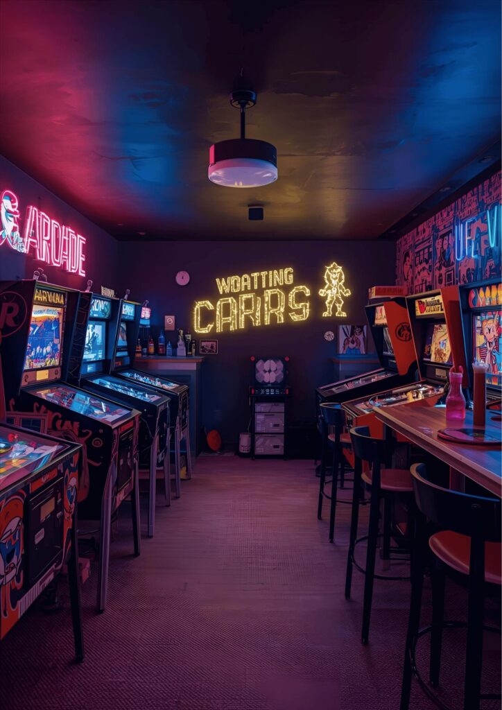 Become the envy of all your friends by filling your garage with the sights and sounds of classic arcade games and pinball machines. Source a mix of vintage cabinetry and modern gaming consoles connected to a large projector screen for varied entertainment. Use dark paint on the walls and install black lights and neon signs to create an authentic and immersive glow-in-the-dark atmosphere. Add a high-top table for spectators to set their drinks and snacks while waiting for their turn to play. This nostalgic retreat is a guaranteed hit for parties and provides endless fun for gamers of all ages.