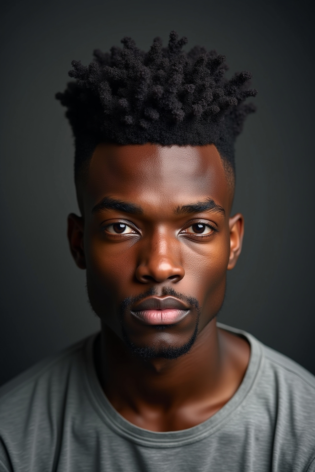 The Afro High Taper Fade masterfully combines the natural volume of textured hair with precisely defined edges, creating a striking contrast that’s become a signature style in Black men’s grooming. This versatile cut maintains generous length and fullness on top while gradually transitioning to closely clipped sides, offering the perfect balance between bold expression and refined grooming. The sharp line work around the temples and neckline creates a frame that enhances facial features and head shape, making it particularly flattering for men with oval, square, or diamond face structures. When properly maintained with regular line-ups every 2-3 weeks, this style delivers the perfect combination of artistic volume management and the clean, professional appearance that defines the modern high taper fade.