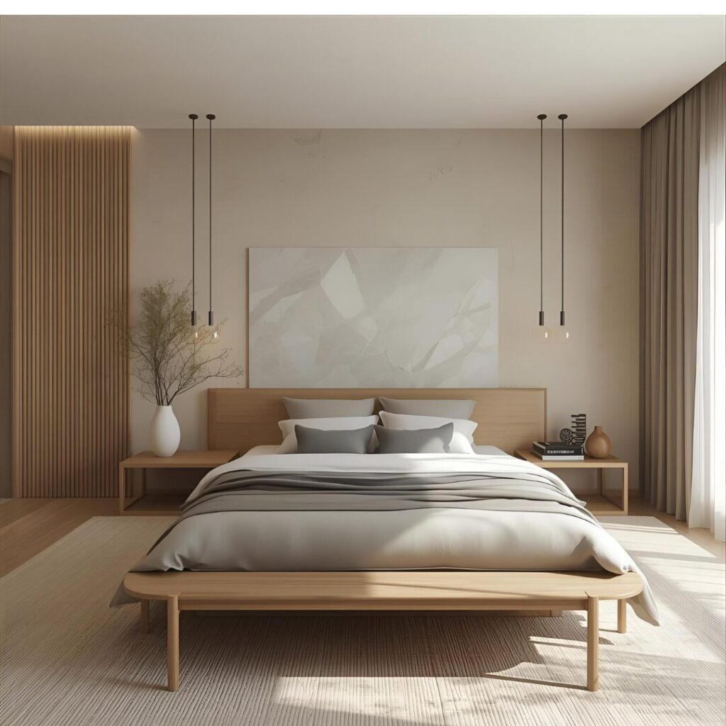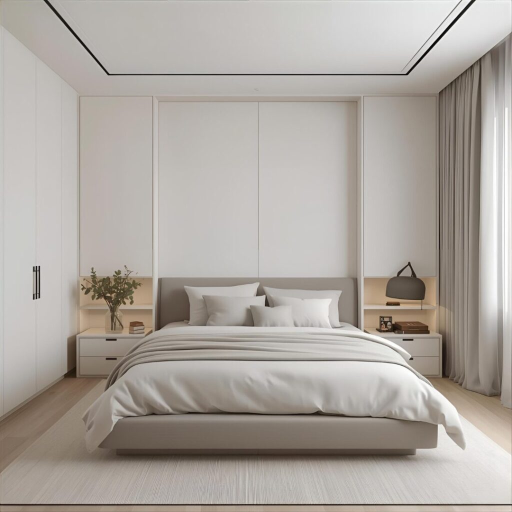 Minimalism embraces simplicity and serenity. Stick to a neutral color palette with whites, soft grays, and beige tones. Limit décor to essentials like a sleek bed, bedside tables, and subtle lighting. This creates a clutter-free environment ideal for relaxation.