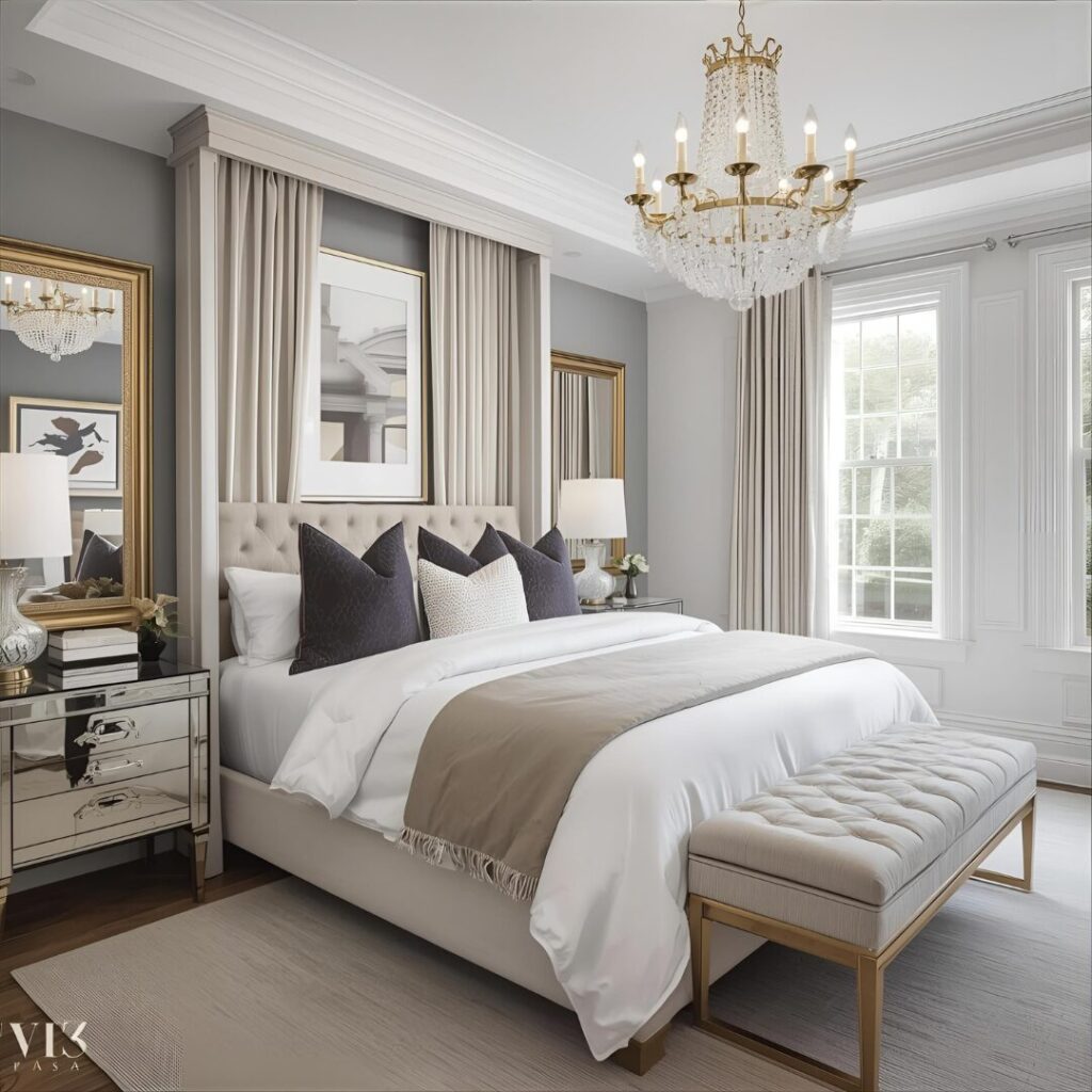 Pro Tip: Choose a statement chandelier or crystal bedside lamps for instant glamour.