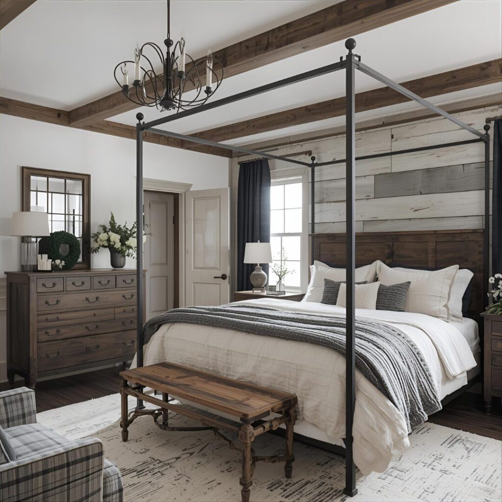 Rustic bedrooms highlight natural materials like reclaimed wood, iron accents, and cozy textiles. Think wooden beams, vintage dressers, and layers of plaid or linen bedding. This style offers warmth and character while keeping the look grounded.