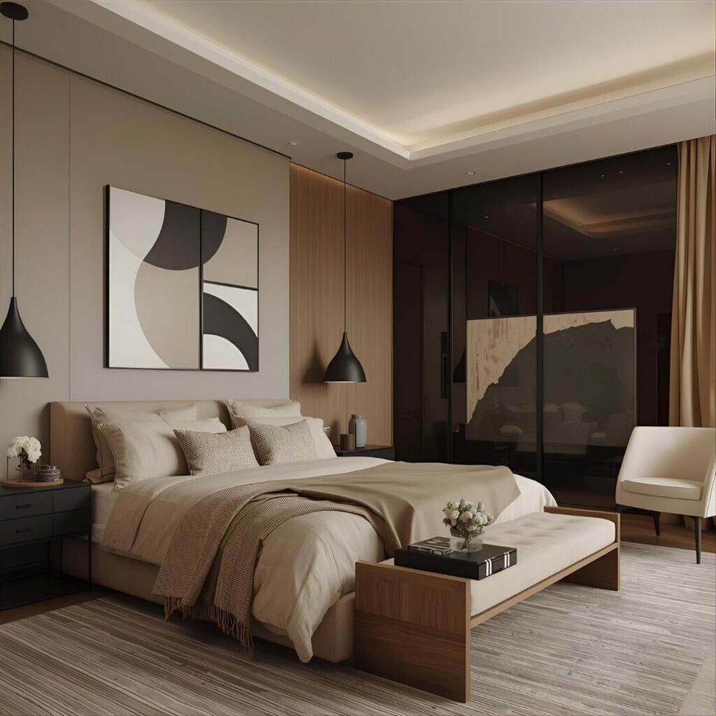 Contemporary bedrooms focus on clean lines, bold accents, and stylish furniture. Incorporate geometric shapes, neutral tones with pops of color, and statement art pieces. The result is sleek yet welcoming.