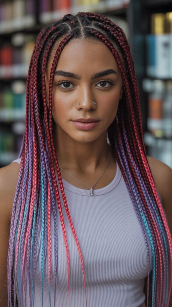 Make a bold fashion statement by incorporating vibrant colors into your micro braids, from subtle highlights to full-head rainbow effects. Choose colors that complement your skin tone and personal style—burgundy and purple for a rich, dramatic look, pastel pinks and blues for a softer appearance, or bold primary colors for maximum impact. You can opt for a few strategically placed colored braids throughout your head or go for an all-over color transformation using high-quality kanekalon hair. Colored micro braids allow you to experiment with temporary color without committing to dyeing your natural hair, making them the perfect playground for self-expression.