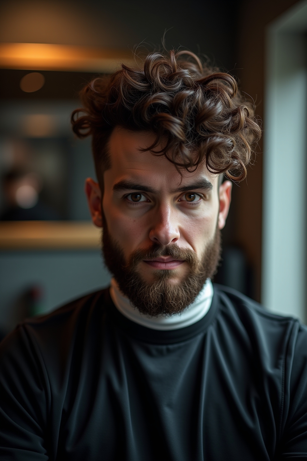 Der Mid Taper mit Locken harmoniert hervorragend mit ovalen und länglichen Gesichtsformen, da das Volumen an der Oberseite die natürlichen Proportionen ausbalanciert. Für eckige Gesichter sorgt diese Frisur für eine angenehme Weichheit, die harte Kinnlinien elegant kontrastiert. Bei herzförmigen Gesichtern gleicht der mittlere Übergang die breitere Stirn optisch aus. Auch runde Gesichtsformen profitieren vom verlängernden Effekt des Volumens oben, während die schmaleren Seiten das Gesicht optisch strecken. Die Vielseitigkeit dieser Haarstruktur erlaubt verschiedene Styling-Varianten – von lockeren, natürlich fallenden Locken bis hin zu definierteren Mustern. Der graduelle Übergang des Mid Tapers schafft bei praktisch allen Gesichtsformen einen ausgewogenen Look.