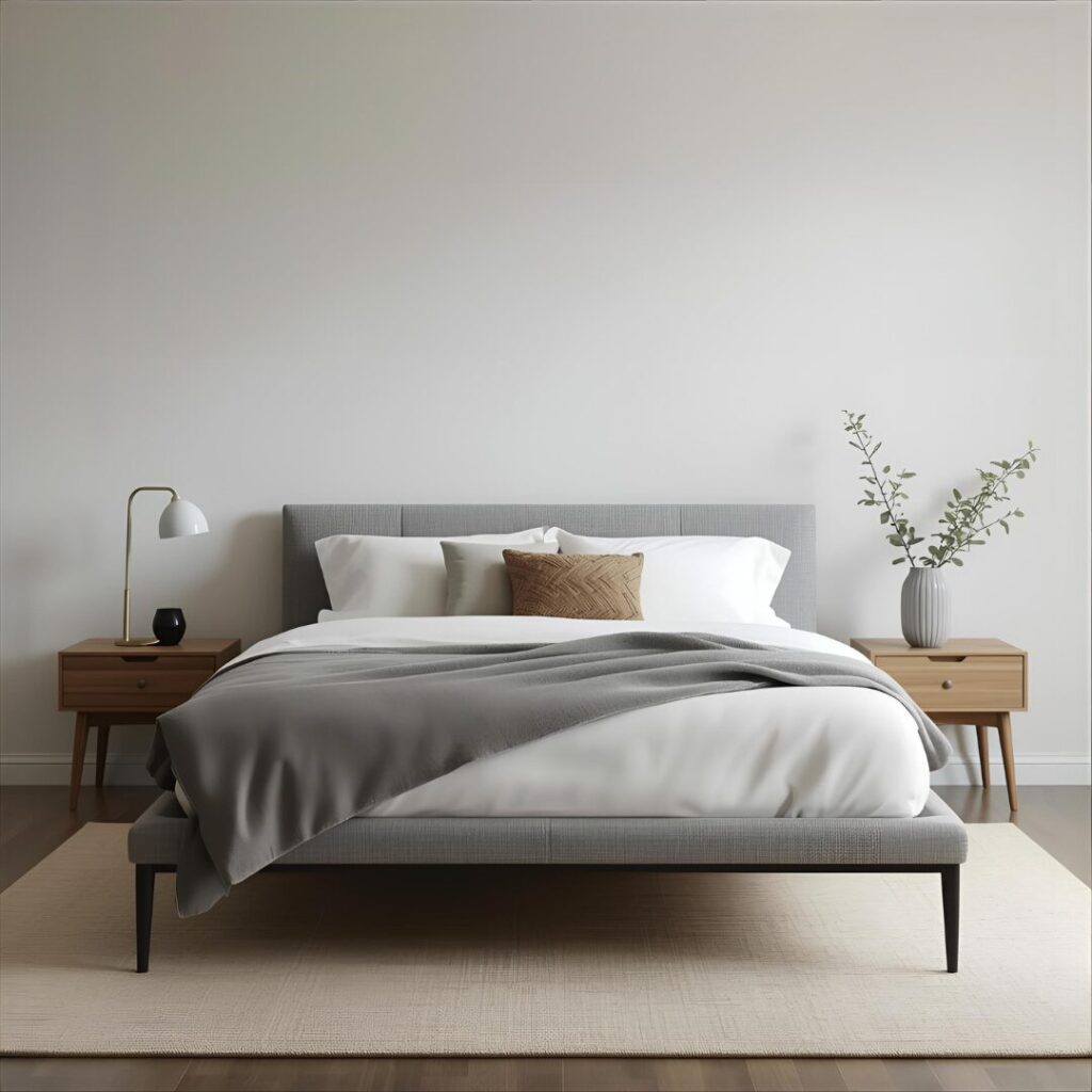 Incorporating wood, stone, or linen adds warmth and keeps a minimalist bedroom from feeling sterile. Natural elements create harmony and balance.
