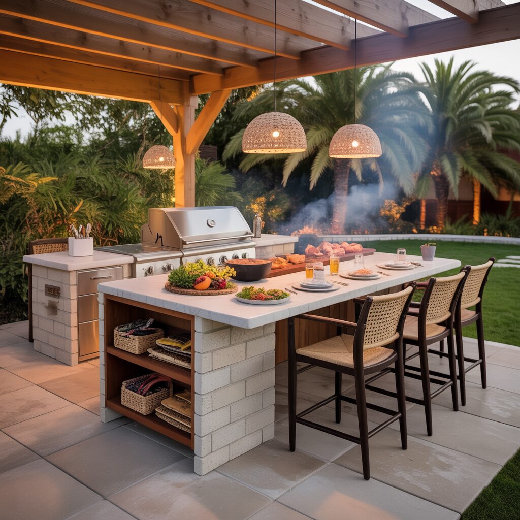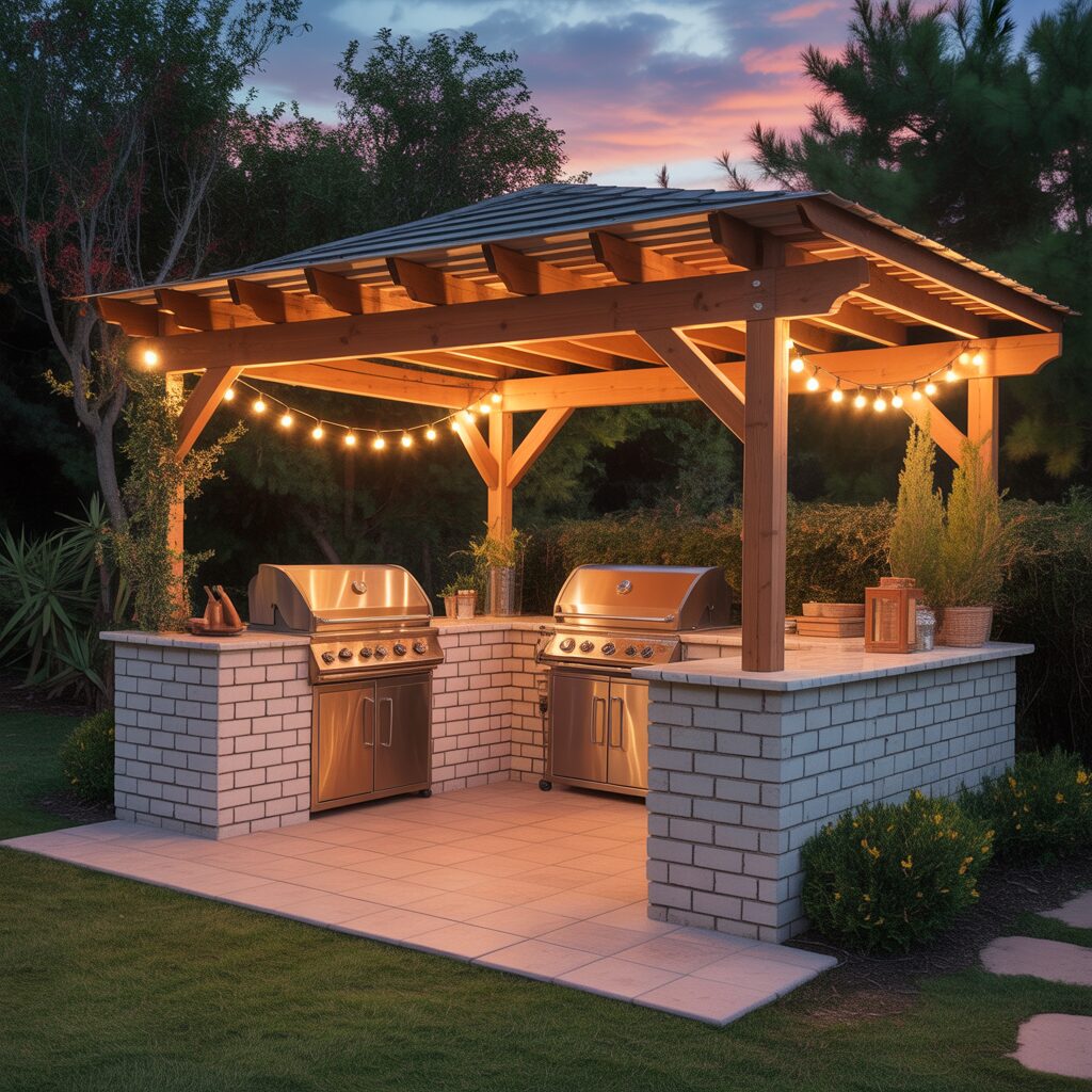 A pergola or roof covering extends the life and comfort of your outdoor cooking area. It provides shade during sunny days and protection during light rain. A covered station also creates a cozy ambiance for evening barbecues. Adding string lights or lanterns enhances the charm even further.