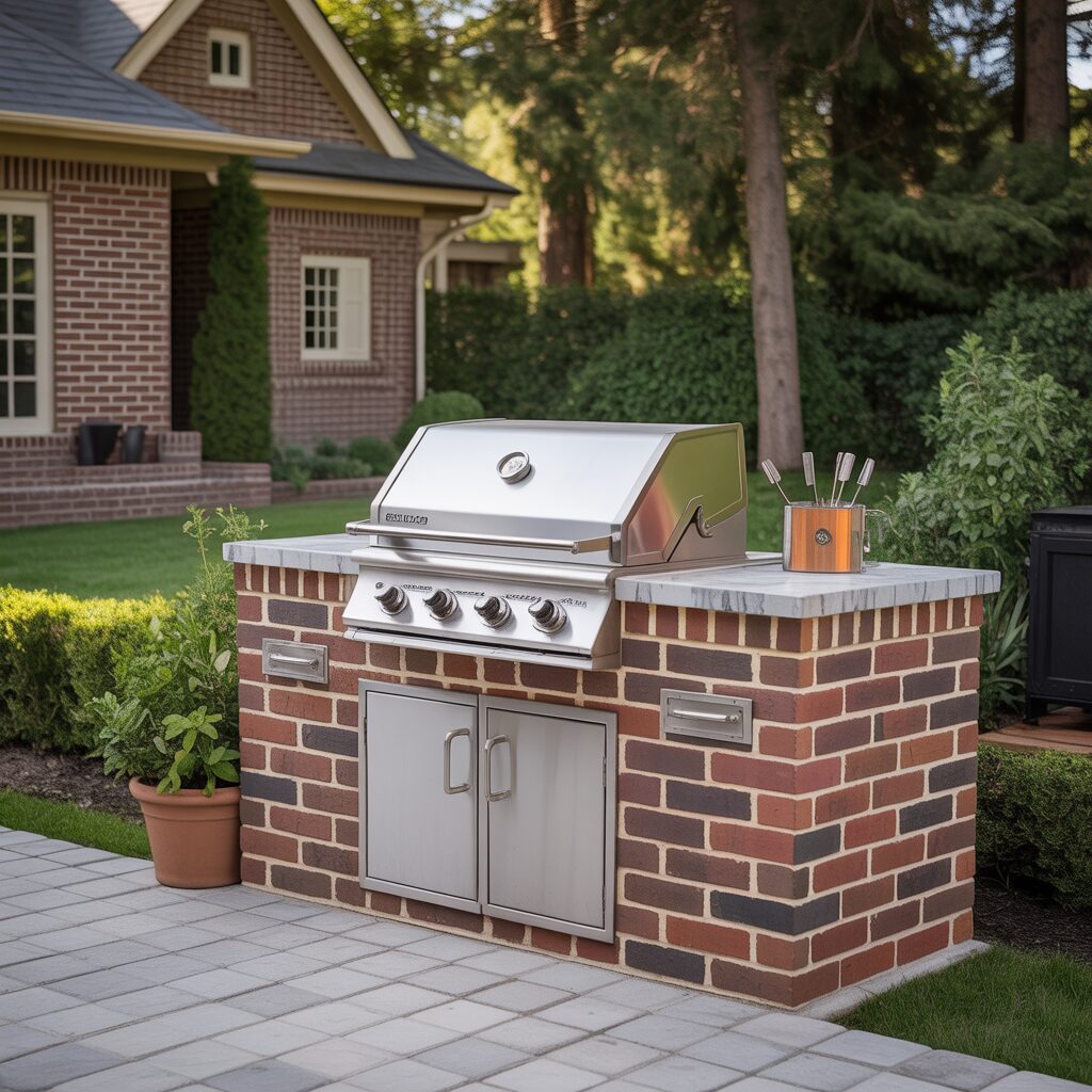 Brick grill stations add a classic and long-lasting appeal to your backyard. Bricks are heat-resistant and give a timeless touch to outdoor spaces. This design pairs beautifully with traditional homes and gardens. It’s a practical and stylish option that never goes out of fashion.