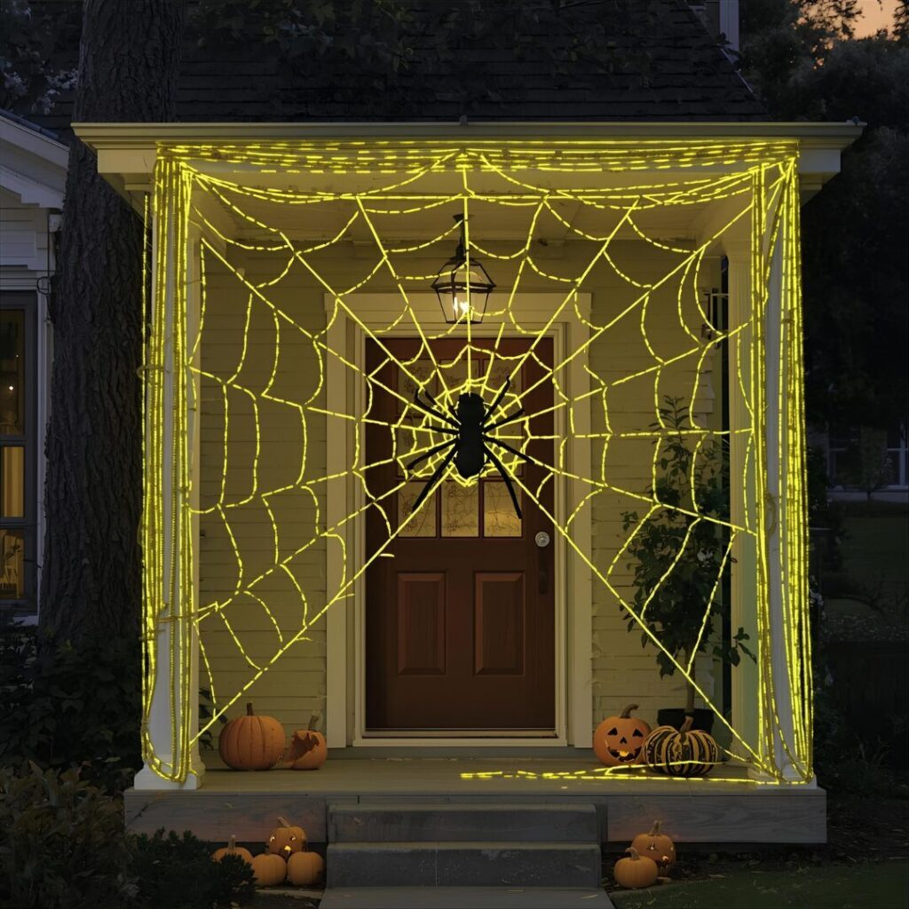 Use thick rope or yarn to create oversized spider webs across trees or porch corners. Add a large fake spider in the center for maximum effect. This larger-than-life display is both spooky and fun. It instantly catches attention from the street.