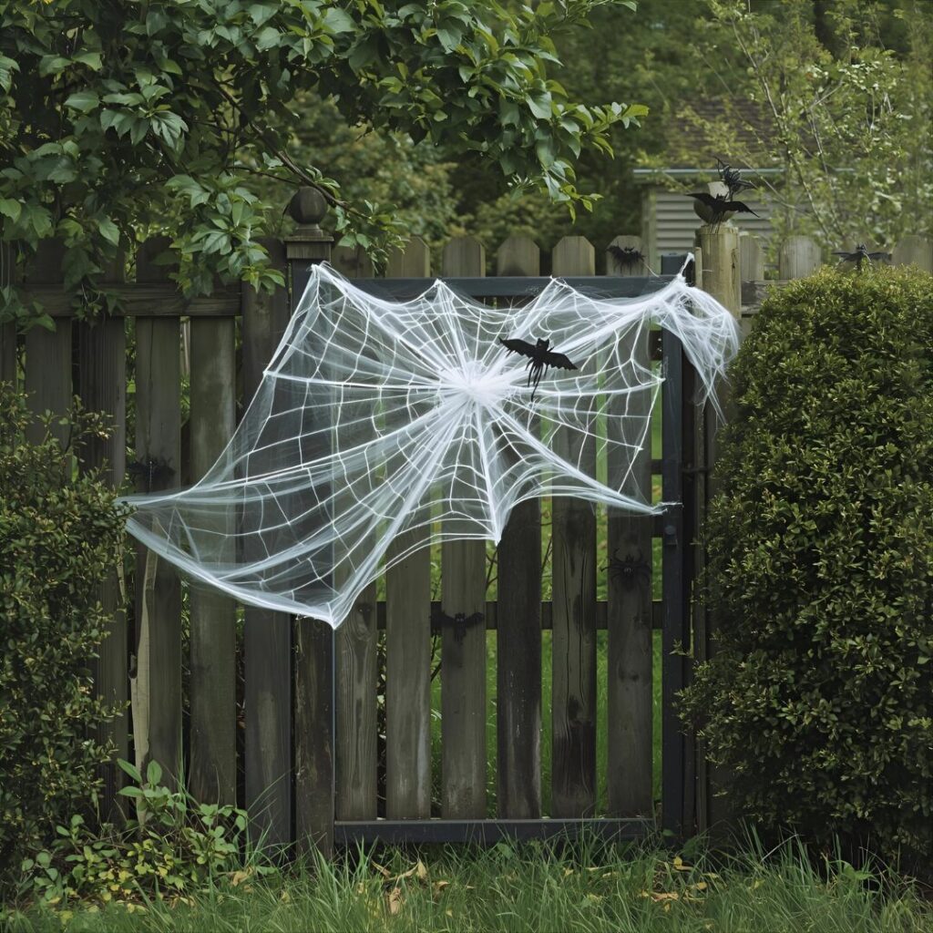 Stretch artificial cobwebs across fences, gates, or bushes for instant spookiness. Add a few plastic spiders or bats to complete the look. The texture makes your yard look abandoned and eerie. This decoration is quick but highly effective.